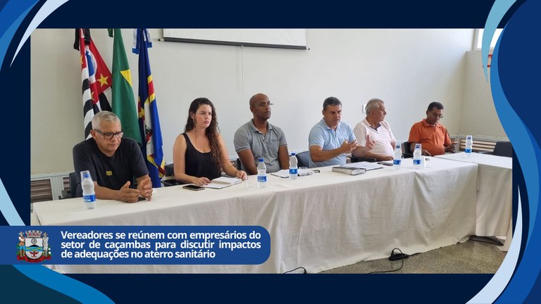 Na última quinta-feira (4), os vereadores Mira, Zé Rocha, Alliny Sartori, Ricardo Prado, Célio Aristão e José Nilson participaram de uma reunião no auditório AIEAA | CREA com empresários do setor de caçambas. O encontro teve como objetivo ouvir as principais dificuldades enfrentadas pelas empresas que atuam no segmento no município.